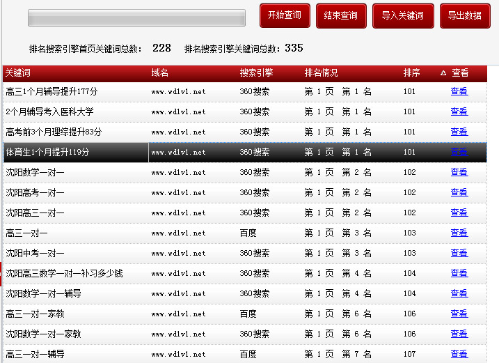 {dq}專業(yè)SEO關(guān)鍵詞排名查詢軟件,只要【輸入網(wǎng)址】,就可以【一鍵查詢】【整站】【不同網(wǎng)頁】【不同關(guān)鍵詞】在【各大搜索引擎】上的排名情況;也可以【直接導(dǎo)入】所有要搜索的關(guān)鍵詞,直接搜索各關(guān)鍵詞在各大搜索引擎上面的排名狀況;是了解自己網(wǎng)站優(yōu)化情況、競(jìng)爭(zhēng)對(duì)手網(wǎng)站關(guān)鍵詞排名情況的極佳助手。