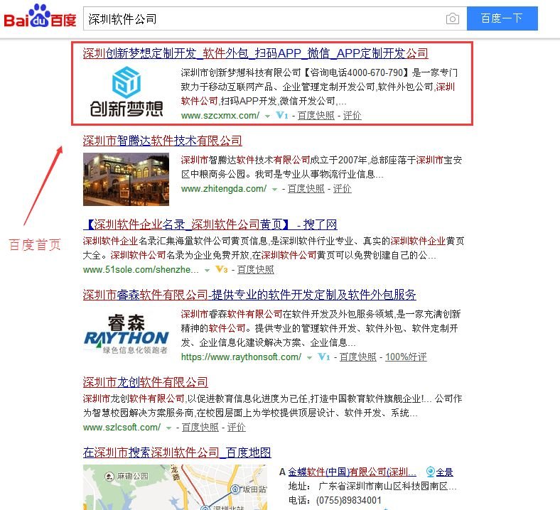 同行軟件公司也委托我們操作優(yōu)化,效果顯著! 定制開(kāi)發(fā)公司----百度首頁(yè)第一 掃碼APP開(kāi)發(fā)----百度首頁(yè)第一 APP定制開(kāi)發(fā)----百度首頁(yè)第一 深圳軟件開(kāi)發(fā)----百度首頁(yè) 深圳微信開(kāi)發(fā)----百度首頁(yè) 深圳接碼平臺(tái)----百度首頁(yè) 微信開(kāi)發(fā)公司----百度首頁(yè) 深圳軟件公司----百度首頁(yè) 公司名稱:深圳市創(chuàng)新夢(mèng)想科技有限公司