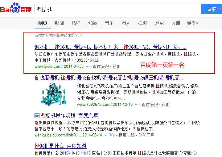 關(guān)鍵詞“銼鋸機(jī)”在百度排名:第1頁(yè)第1名