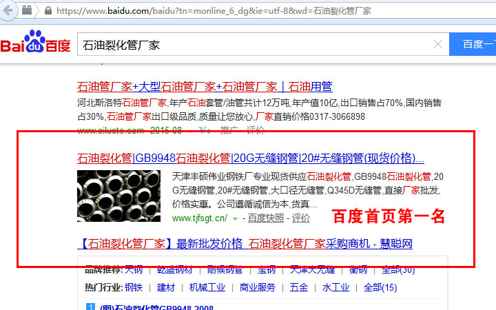 關(guān)鍵詞“石油裂化管廠家”在百度排名:第一頁第一名