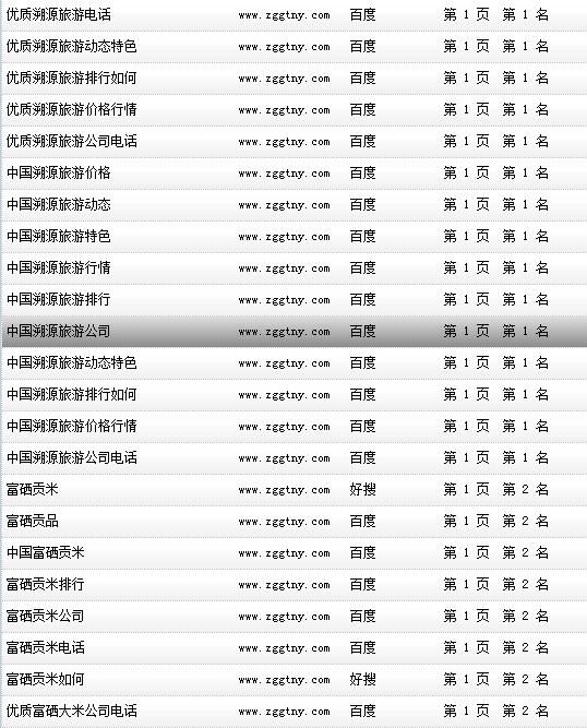 各關(guān)鍵詞在各大搜索引擎排名情況: