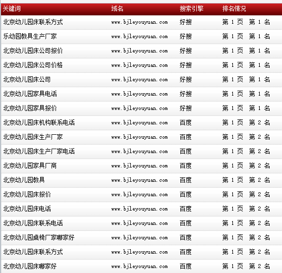 各關(guān)鍵詞在各大搜索引擎排名情況: