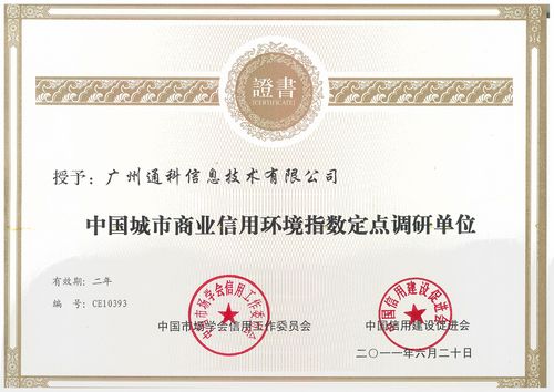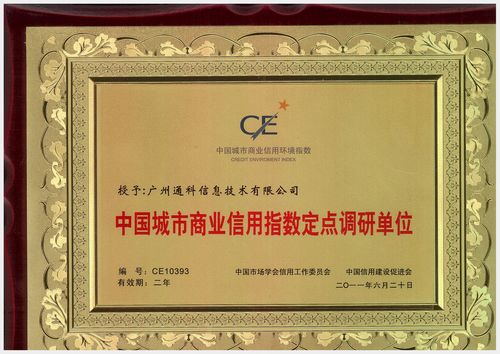 熱烈祝賀廣州通科公司給評選為“ 中國{dq}城市商業(yè)信用指數(shù)定點調(diào)研單位”